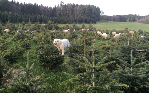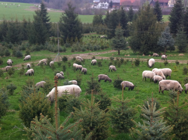 In unserer Tannenbaumplantage weiden die robusten und pflegeleichten Shropshire Schafe und helfen bei der aktiven Pflege der Plantage mit. |